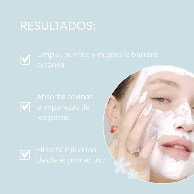 La Mascarilla Facial con arcilla y ácido hialurónico purifica, hidrata y mejora visiblemente la textura de la piel sin causar resequedad. Su fórmula ayuda a absorber impurezas y controlar el exceso de grasa mientras aporta una hidratación suave que deja el rostro fresco, suave y revitalizado. Ideal para pieles que buscan limpieza profunda y confort en un solo paso. Para aplicarla, comenzá con la piel limpia y seca. Extendé una capa uniforme sobre el rostro, evitando el contorno de ojos y labios. Dejá actuar de 10 a 15 minutos hasta que la mascarilla se seque completamente. Finalmente, enjuagá con agua tibia realizando movimientos suaves. Si lo necesitás, podés ayudarte con una toalla húmeda.