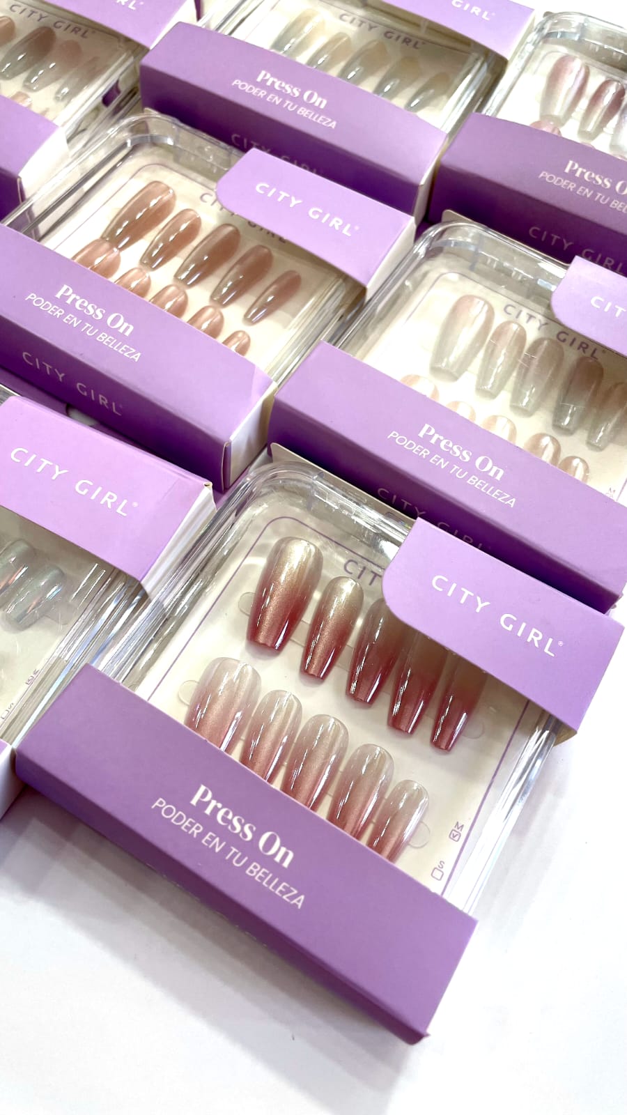 Uñas press on City girl espejadas